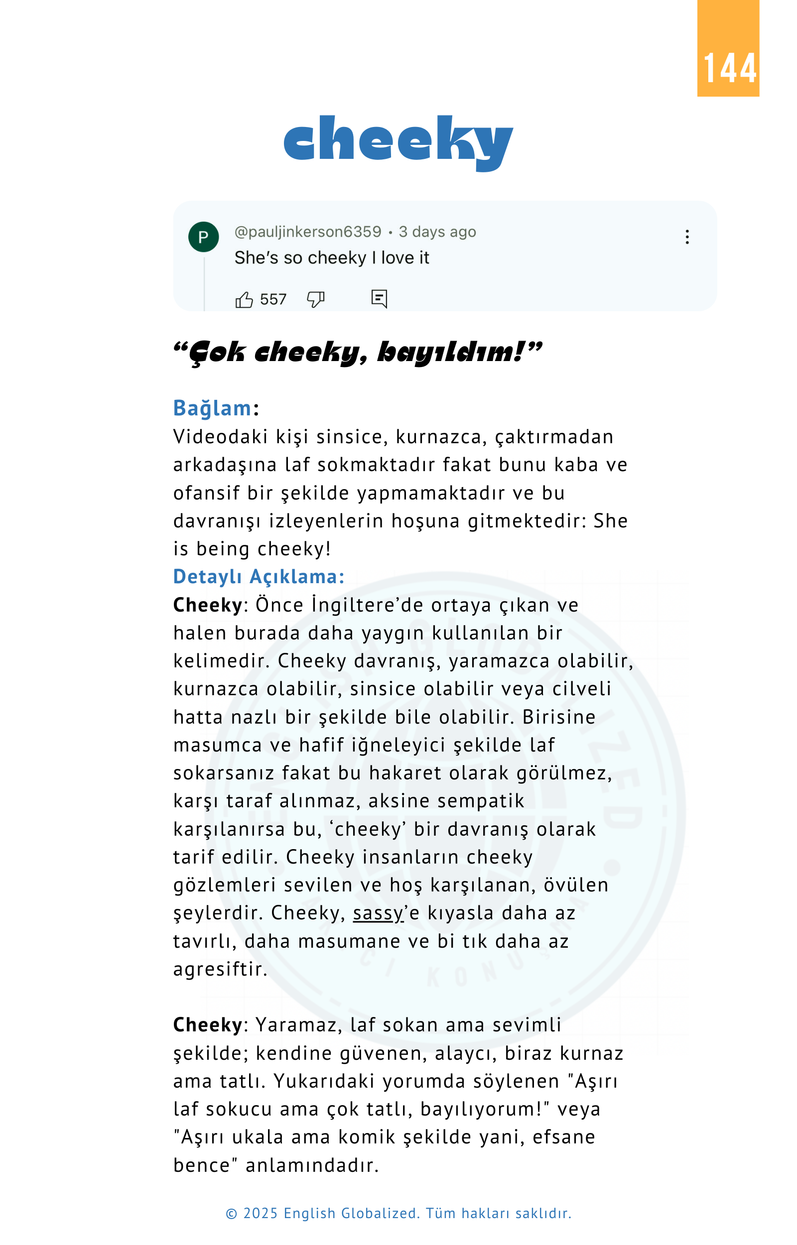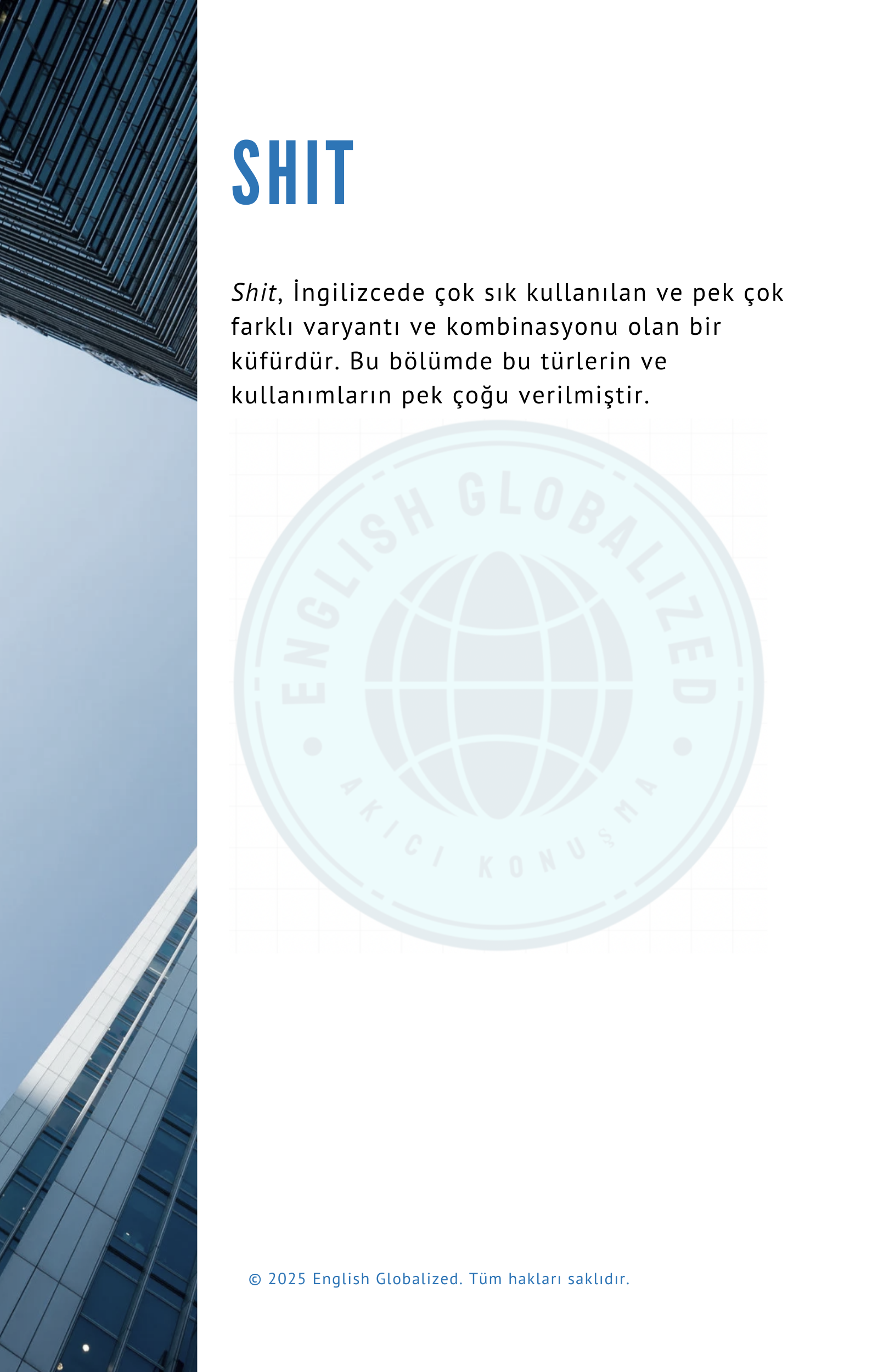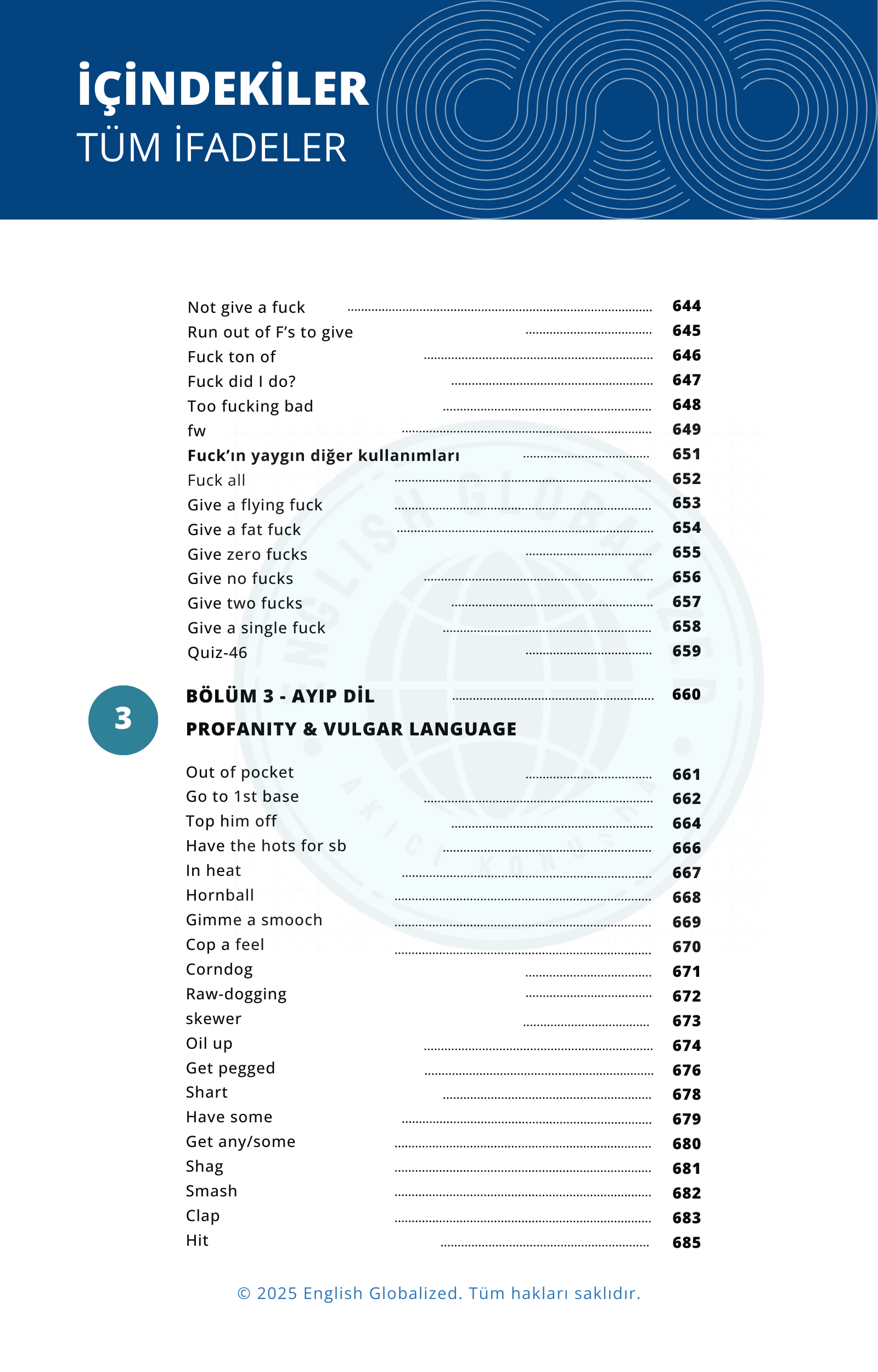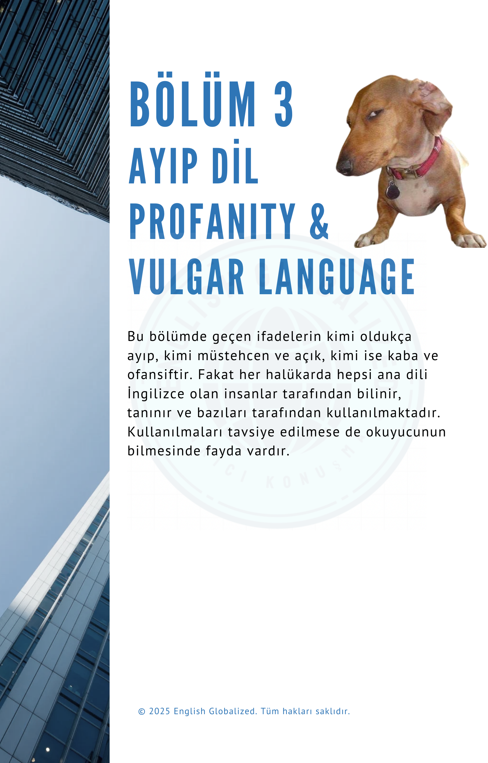 Üçüncü ve son bölüm ise ayıp slang ifadelere ayrılmıştır. Burada geçen ifadelerin kimi oldukça ayıp, kimi müstehcen ve açık, kimi ise kaba ve ofansiftir. Fakat her halükarda hepsi ana dili İngilizce olan insanlar tarafından bilinir, tanınır ve bazıları tarafından kullanılmaktadır. Kullanılmaları tavsiye edilmese de okuyucunun bilmesinde fayda vardır.